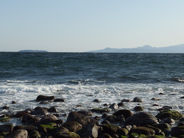 After Yugawara, I stopped at the nearby Cape Manazuru, a small peninsula protruding into Sagami Bay. Apparently, its shape resembles a crane with open wings. At the tip of Cape Manazuru, there is a distinctive rock formation called “Mitsuishi” (三ツ石; Three Rocks). There are also trails in the forest near the rock but I didn’t have time before nightfall. To get there, I took the bus from Manazuru station to the tip of the peninsula and walked down to the ocean and the Mitsuishi rocks then went back to the station by bus.